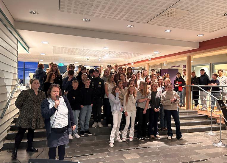 Då elevane frå Sund ungdomsskole vitja Gestapmuseet, fekk dei omvising i museet, og deltok i museets undervisningsopplegg.